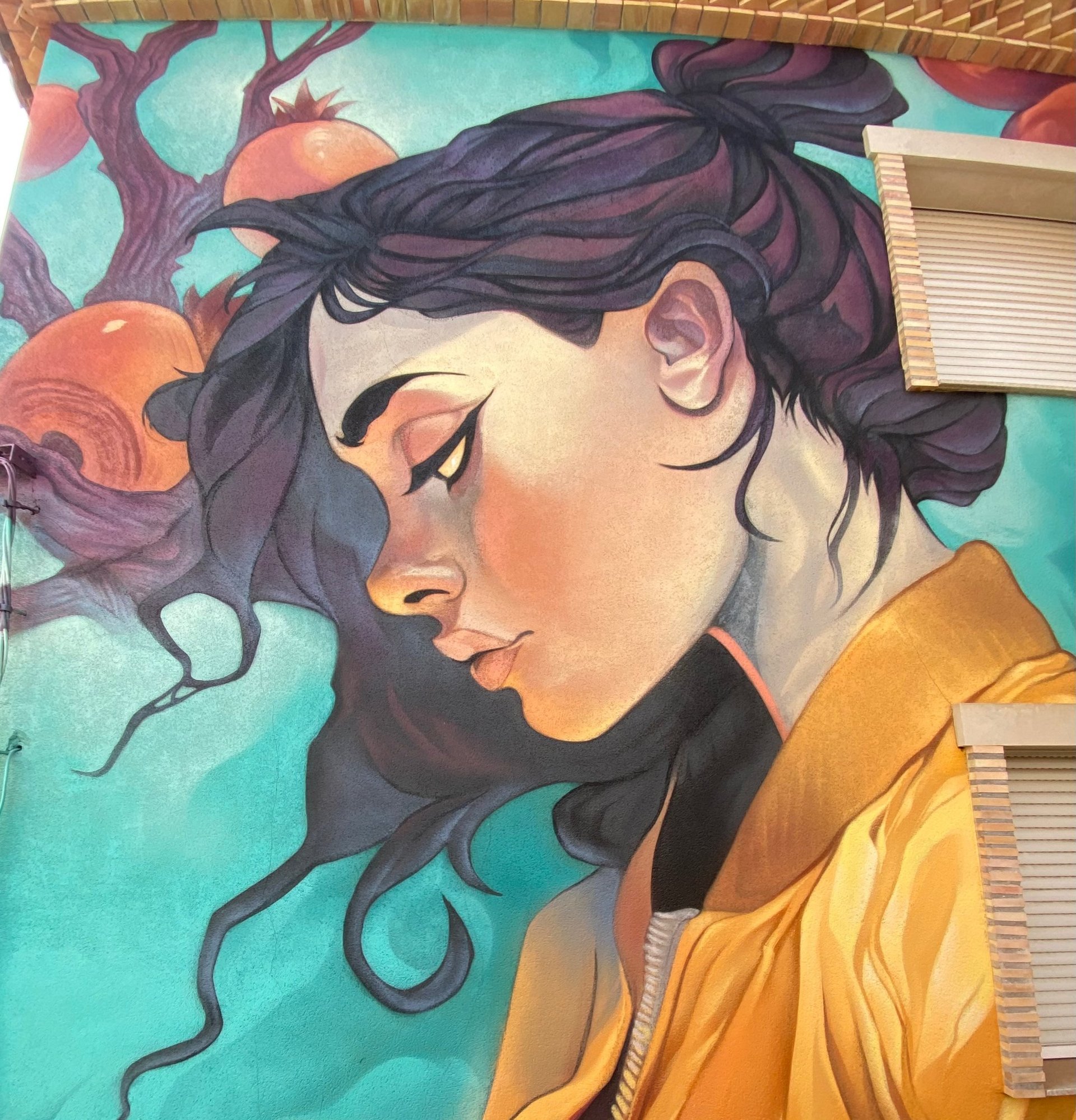 Este mural es un homenaje a la maternidad y al poder femenino de dar vida; no solo al acto de nacer, sino también a la fuerza cotidiana de sostener, proteger y acompañar lo frágil hasta que florece.