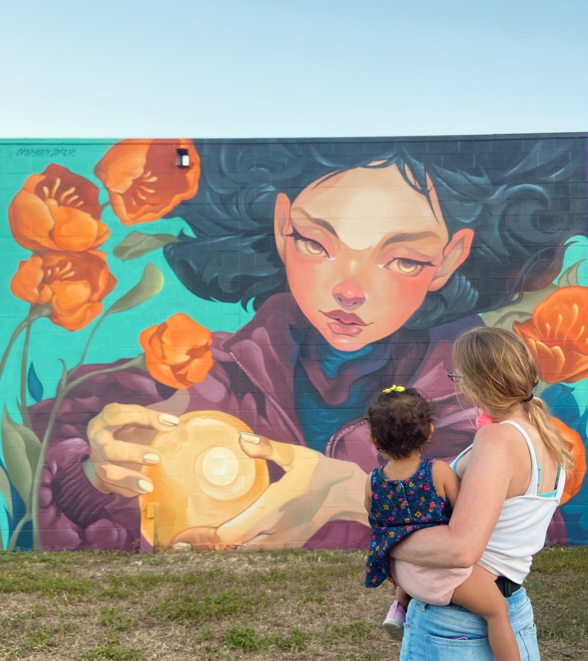Aurora represents the bond between human energy and the planet’s life force. The figure holds an orb as a symbol of connection among all forms of life, while flowers emerge as a manifestation of inner rebirth.